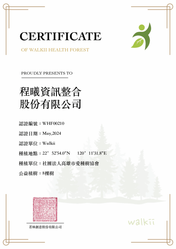 程曦資訊攜手 Walkii 健康森林計畫:減碳1.4萬公斤並種下8棵樹