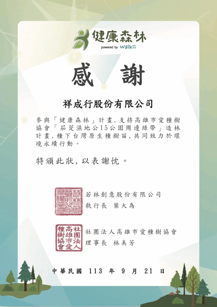 Walkii 健康森林是一款手機計步軟體app,透過apple健康、Google fit、Garmin等裝置同步連動來計步。與其他健身軟體不同的地方是,Walkii app 可以讓同仁們「用走路計步來改變世界」,除了能培養運動習慣之外,還能為環境永續靜一份心力。祥成便透過這場為期三個月的團隊計步活動,讓夥伴們在培養運動習慣的同時,還能將累積的步數換算成種樹回饋地球的綠色行動,實現運動和環保的雙重意義。