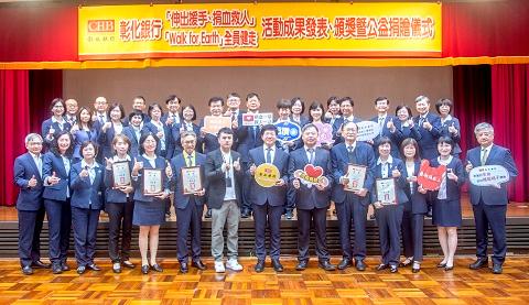 彰銀以具體行動力挺公益,促進社會共融,12月4日舉行職安捐血救人、全員健走成果發表及公益捐贈儀式,由董事長胡光華代表彰銀捐出10萬元公益金給「臺灣罕見血液病促進協會」,為促進臺灣罕見血液病學術及研究發展盡一份心力,同時彰銀透過walkii app實施全員健走減碳做環保,總步數逾18億步,約減少7.4萬公斤排碳量,並與「社團法人高雄市愛種樹協會」合作將種植120棵樹,透過行動落實環境永續。